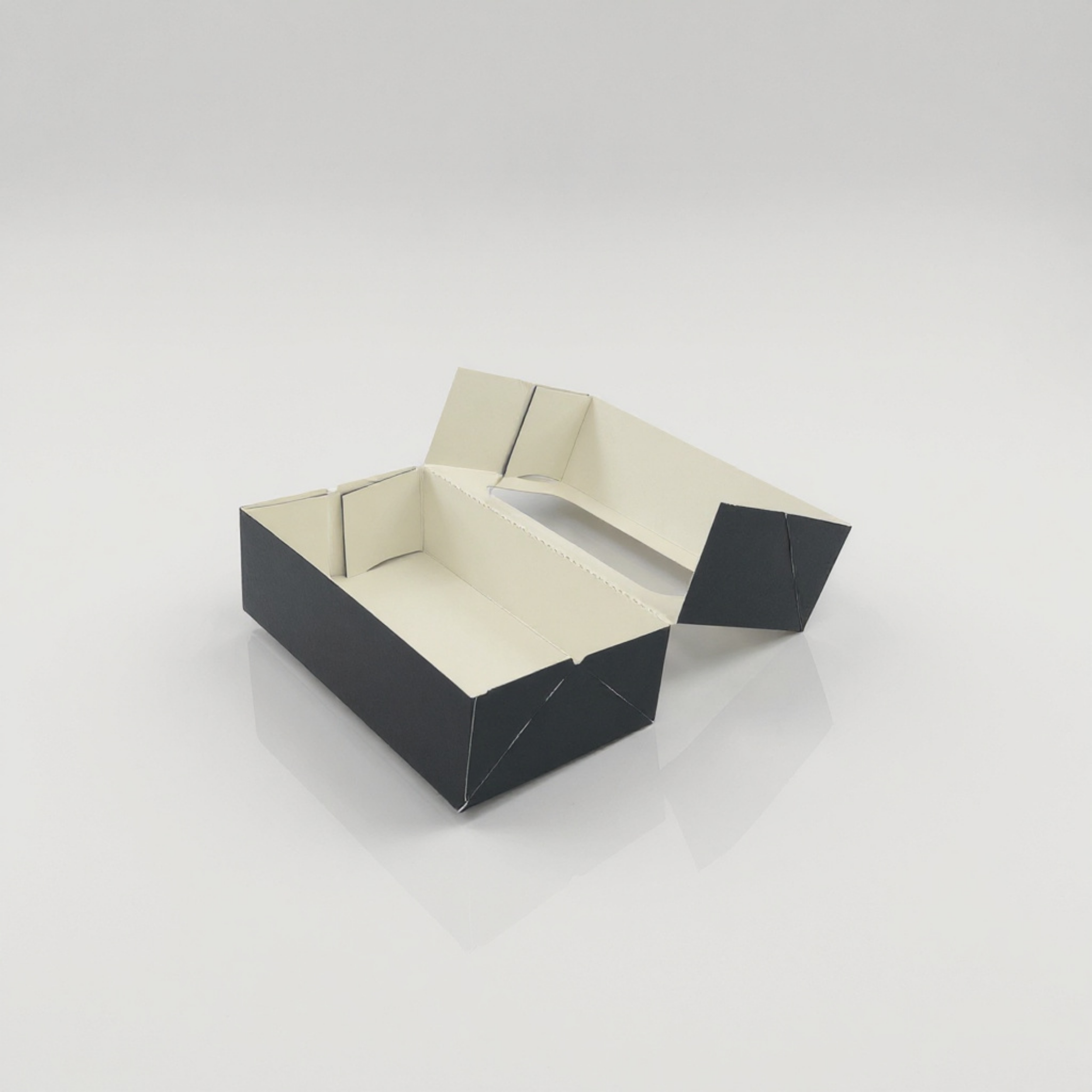 Stabiler Karton für sicheren Transport und wertige Haptik. Das klare PET-Fenster rückt den Inhalt ins beste Licht und fördert Impulskäufe. Schnell einsatzbereit, stapel- und platzsparend – ideal für Bäckereien, Cafés, Feinkost und Catering. Material: Karton/Pappe mit PET-Sichtfenster; Farbe: schwarz/transparent; Form: rechteckig.
