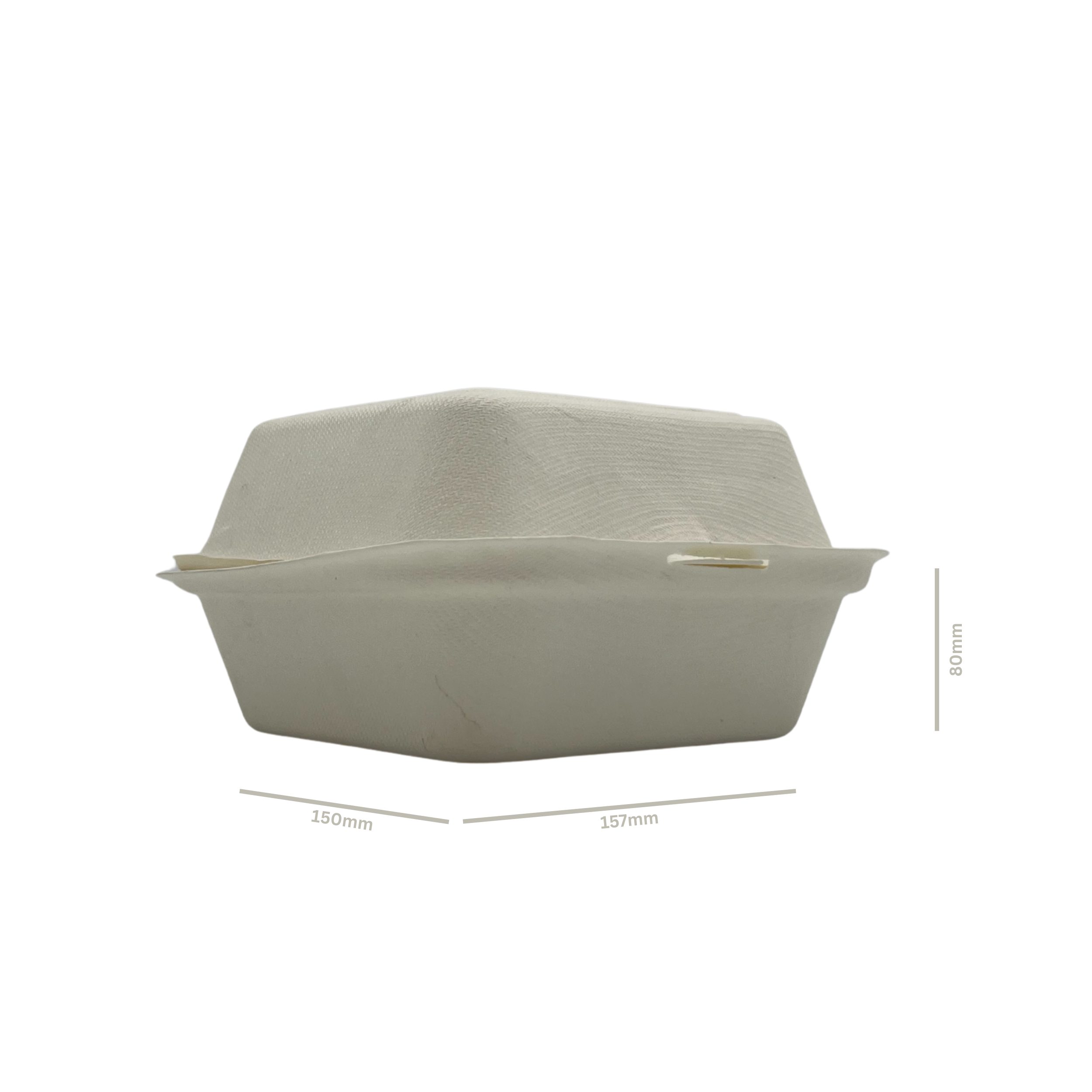 Die Hamburger Box ist kompostierbar, wird aus schnell nachwachsenden Rohstoffen hergestellt und bietet eine stabile Alternative zu herkömmlichen Kunststoffverpackungen. Sie eignet sich perfekt für warme und kalte Speisen und ist dank der robusten Bauweise besonders alltagstauglich im gastronomischen Einsatz.