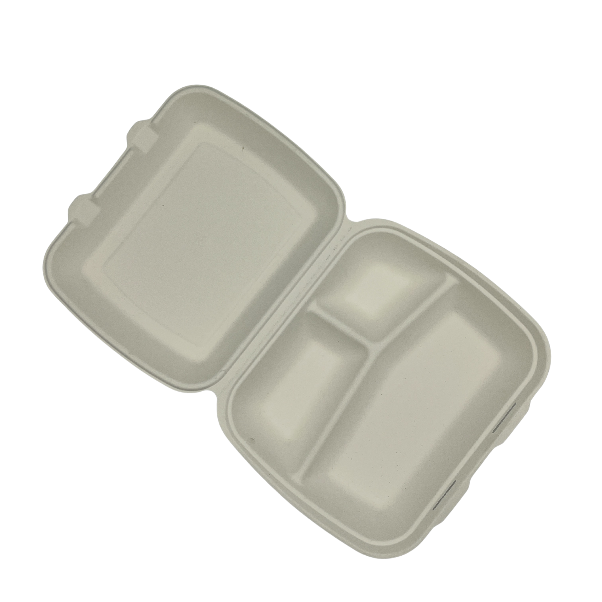 Die BIO Menübox 3-geteilt aus Bagasse ist ideal für Gerichte mit mehreren Komponenten, die appetitlich und hygienisch getrennt bleiben sollen. Hergestellt aus den Fasern des Zuckerrohrs, überzeugt sie durch ihre robuste, schnittfeste Qualität und ist zu 100 % biologisch abbaubar. Die verschließbare Klappkonstruktion hält Speisen sicher und frisch – perfekt für Take-Away, Catering, Streetfood oder Lieferservices. Die naturbelassene Optik betont den nachhaltigen Anspruch in der Gastronomie.