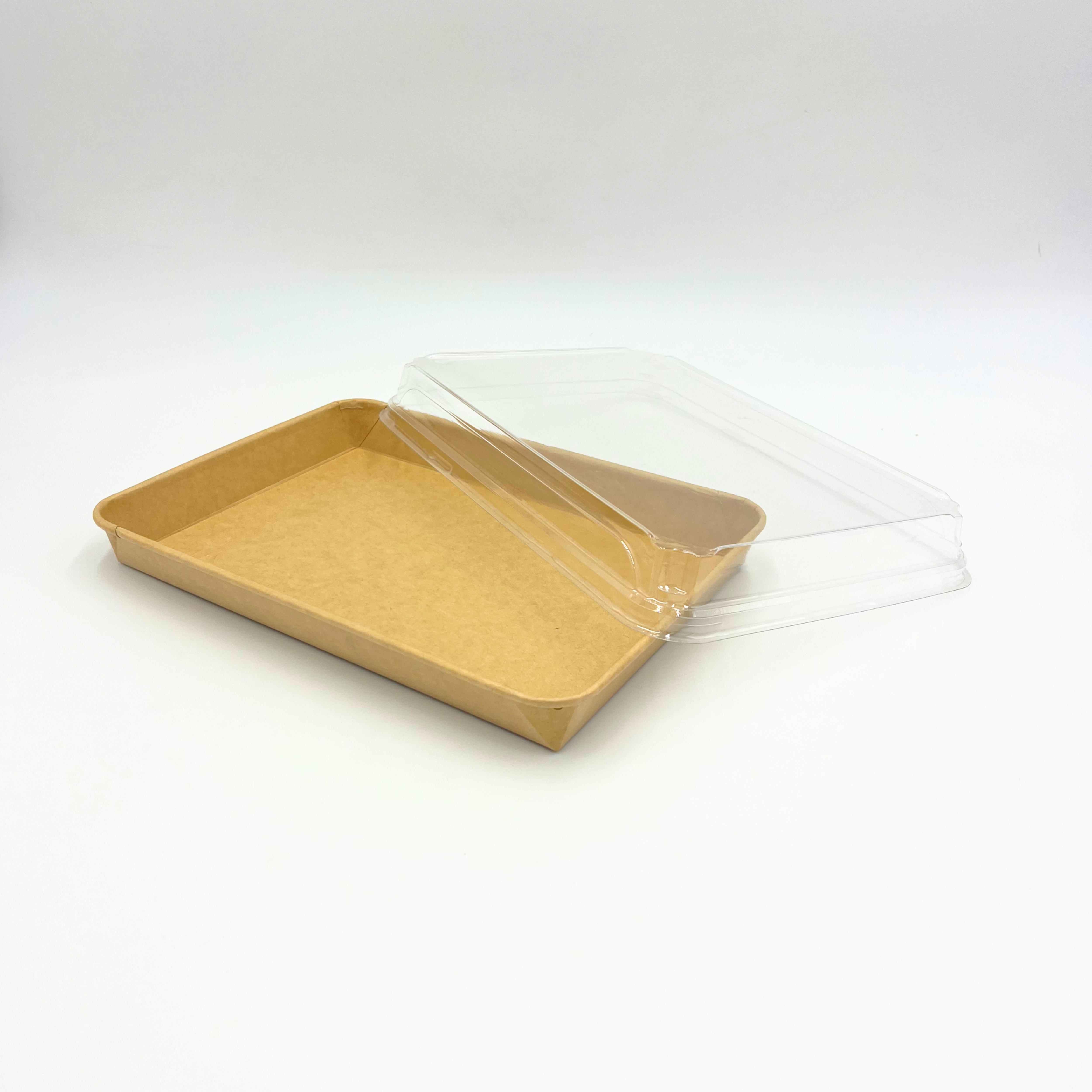 Rechteckige Kraftpapier-Schale BH11 mit PET-Deckel - 255 x 182 x 48 mm - braun/transparent, 200 Sets