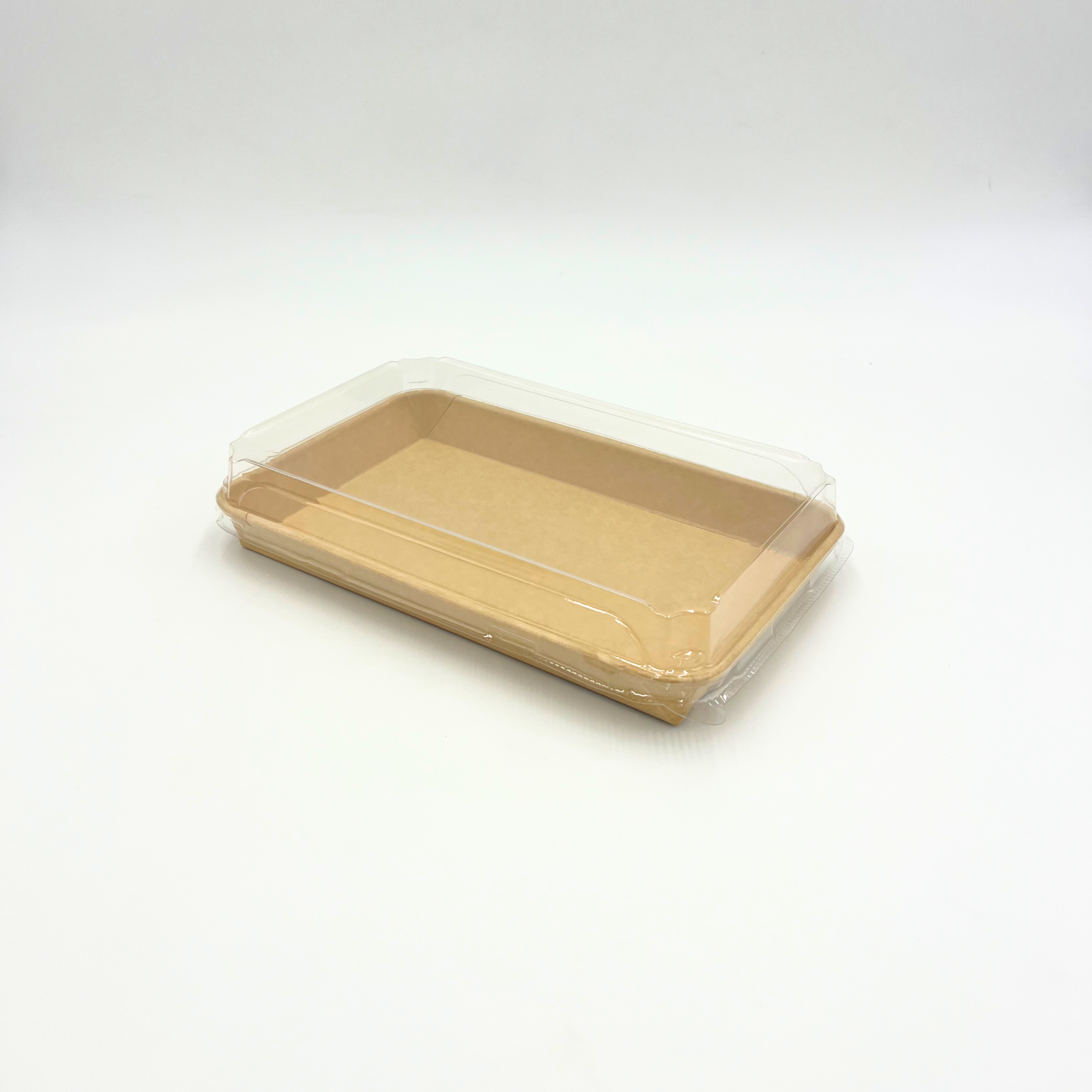 Praktische To-go-Schale aus stabilem Kraftkarton mit transparentem PET-Deckel – ideal für Take-away, Lieferservice und Catering. Die rechteckige Form (220 x 130 x 48 mm) bietet Platz für Sushi, Salate, Pasta, Reis- und Fleischgerichte oder Desserts. Der klare Deckel präsentiert den Inhalt appetitlich, schließt dicht und ermöglicht einen sicheren, sauberen Transport. Im natürlichen Kraft-Look passt die Schale perfekt zu modernen, nachhaltigen Food-Konzepten. Verpackungseinheit: 4 x 50 Sets (200 Sets).