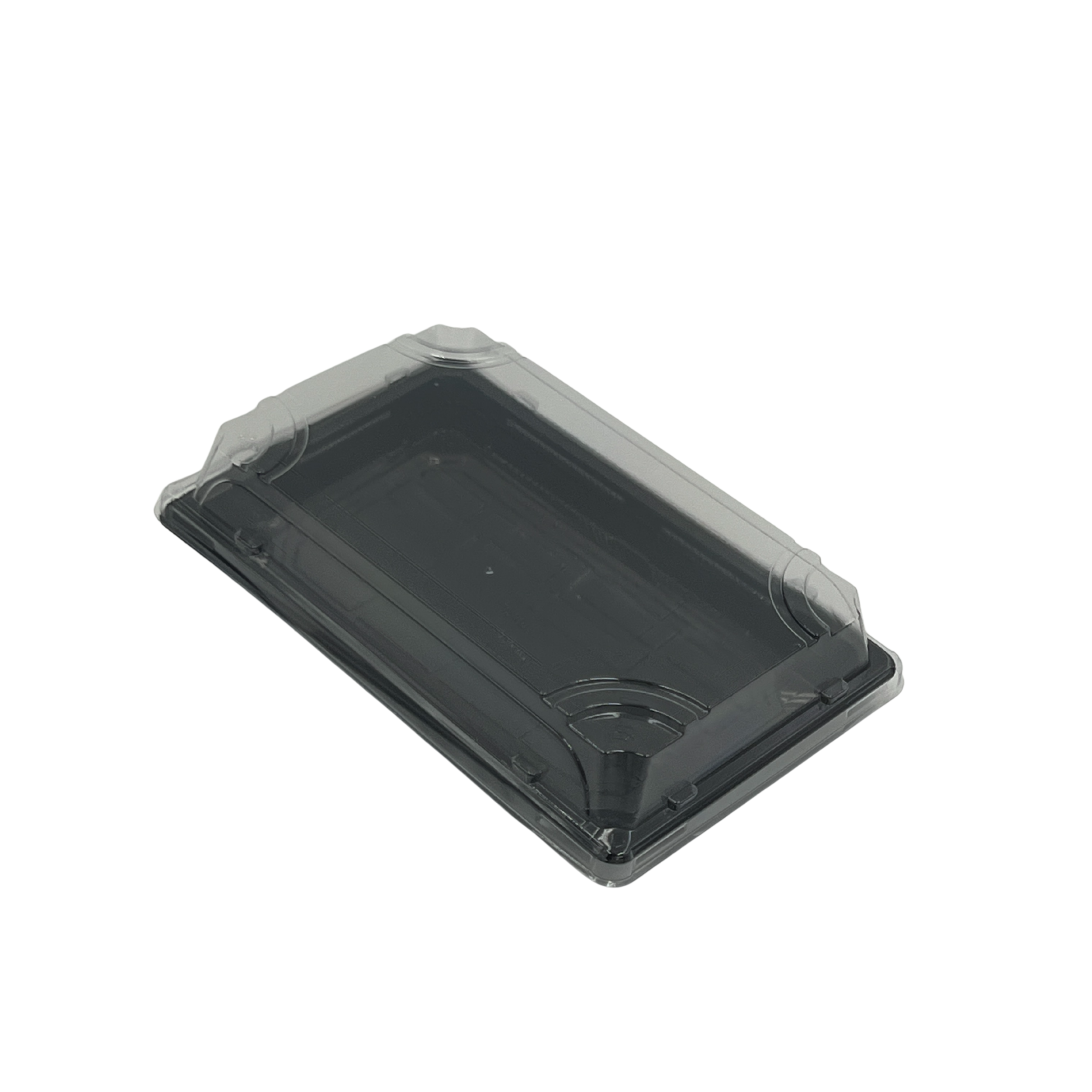 Das Sushi Tray TX-05 kombiniert elegantes Design mit praktischer Handhabung – ideal für Sushi, Sashimi und andere Feinkost. Die Schale besteht aus stabilem, recyceltem rPET, der Deckel aus klarem PET sorgt für einen sicheren Verschluss und eine ansprechende Präsentation. Perfekt für Gastronomie, Take-away und Lieferservice.